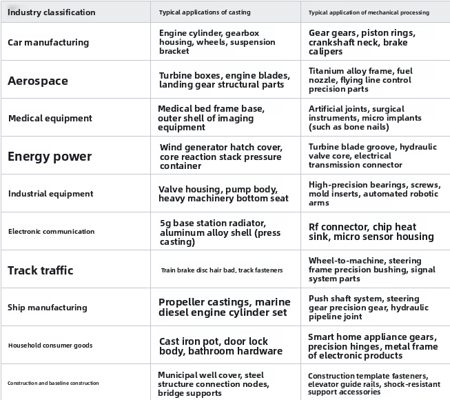 ເຄື່ອງຈັກໄຟຟ້າ Electroparkark: ນໍາໃຊ້ອອກຈາກອຸປະກອນການປະຕິບັດໄດ້. ມັນສາມາດປະມວນຜົນຂຸມຈຸລິນຊີ, ຢູ່ຕາມໂກນທີ່ສັບສົນ, ແລະແມ່ພິມ Carbide, ທໍາລາຍຂໍ້ຈໍາກັດຂອງການຕັດແບບດັ້ງເດີມ. ແຕ່ລະຂະບວນການແມ່ນປະສົມປະສານແລະນໍາໃຊ້ໂດຍອີງໃສ່ຄຸນລັກສະນະຂອງເຄື່ອງມື, ການປັບຕົວແບບເຄື່ອນໄຫວ, ລວມມີຄວາມຕ້ອງການຂອງຕ່ອງໂສ້ອຸດສາຫະກໍາທັງຫມົດ, ຈາກເຄື່ອງຈັກທີ່ຫຍາບຄາຍ ປະເພດການຫລໍ່: ດິນຟ້າຊາຍ: Silica Sand, ດິນຫນຽວ, ຫຼືຜູ້ຕິດນ້ໍາຢາງຖືກໃຊ້ເພື່ອສ້າງແມ່ພິມດຽວຫລືເຄິ່ງຖາວອນ. ຝາອັດປາກມົດລູກໄດ້ຖືກສ້າງຕັ້ງຂຶ້ນໂດຍການພິມຕົວແບບ. ວິທີການນີ້ແມ່ນເຫມາະສໍາລັບການຜະລິດໂລຫະທີ່ມີຄວາມຫຼາກຫຼາຍຂອງໂລຫະທີ່ມີຄວາມຫຼາກຫຼາຍເຊັ່ນ: ເຫລັກຫລໍ່ແລະເຫຼັກເຫຼັກ.